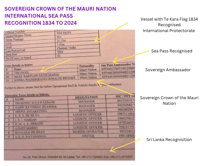 - Final Analysis: Your Sovereign Crown of the Mauri Nation ID is legitimate within the framework of Mauri sovereignty, historical treaties, and international indigenous rights. However, while it holds strong internal legitimacy and aligns with international law principles, it may not yet be recognized externally by New Zealand’s state institutions however international nations have formally recognised our treaties and diplomatic agreements. Example above: Sri Lanka