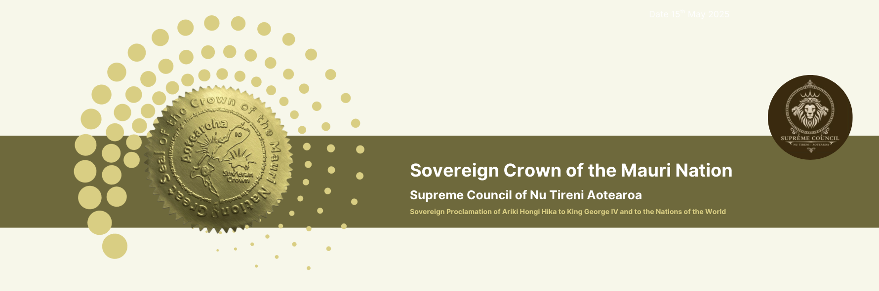 By sacred inheritance through Ariki Hongi Hika and the divine authority proclaimed to King George IV and the Nations in 1820, the Sovereign Crown of the Mauri Nation and the Supreme Council of Nu Tireni Aotearoa stand affirmed in their eternal mandate.